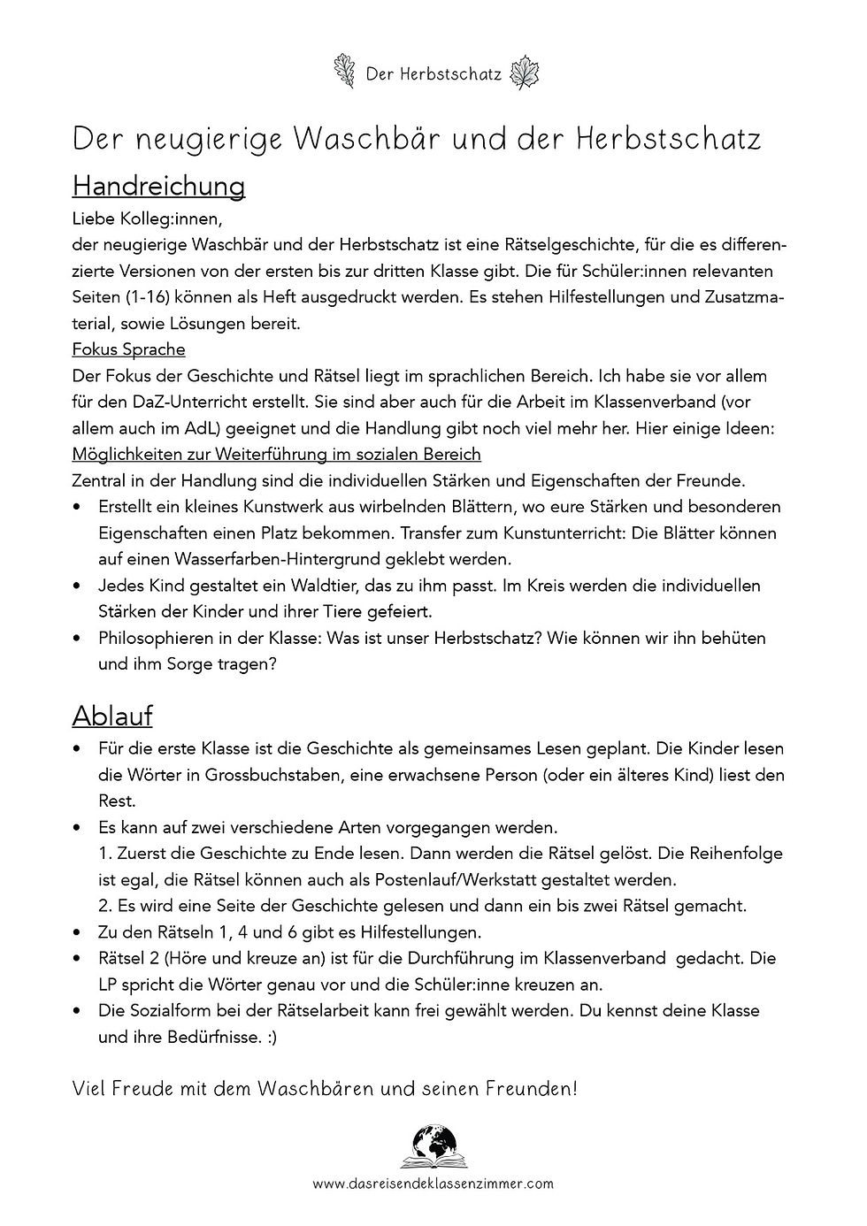 Der neugierige Waschbär und der Herbstschatz 3. Klasse